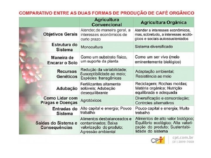 DIFERENTES MODALIDADES AGRÍCOLAS • Convencional – sementes modificadas, pesticidas, agrotóxicos, grandes impactos ambientais • Agroecológica – sementes nativas, adubação por compostagem, sem defensivos agrícolas • Agroflorestal – plantação em meio agropecuária+silvicultura+produção frutífera ao plantio de árvores,