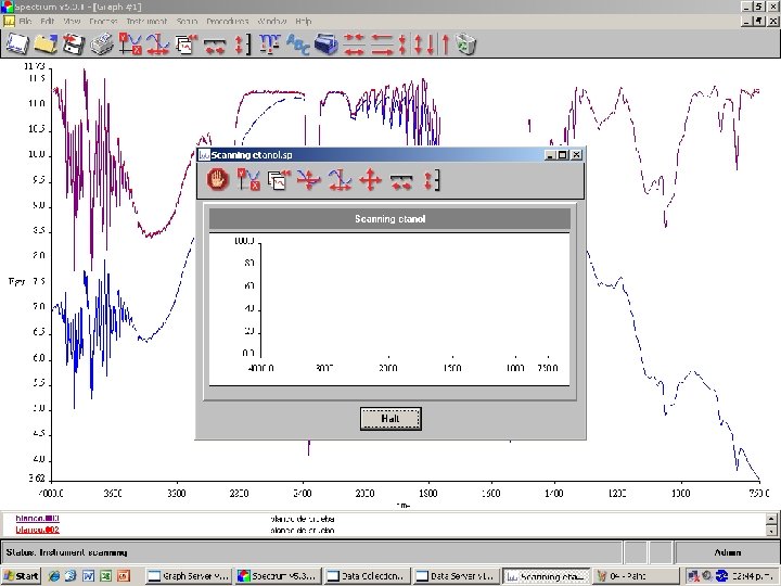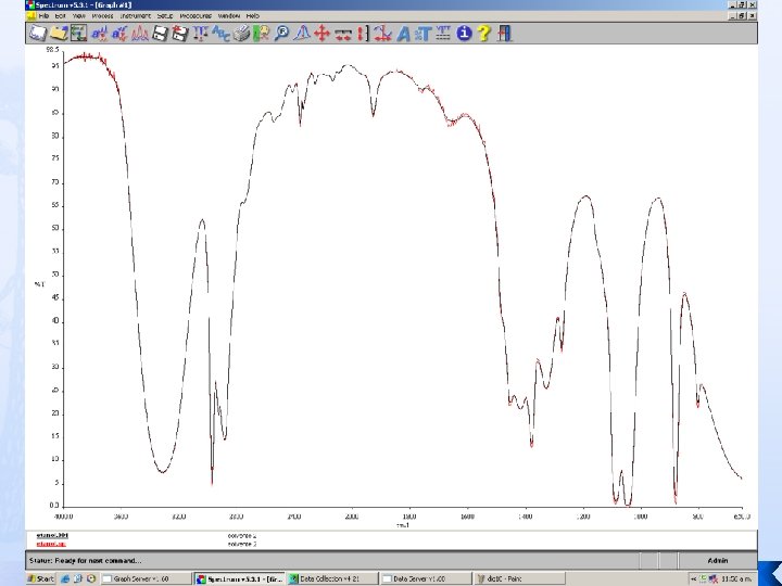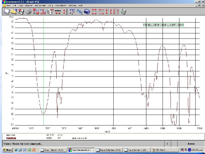 Espectro IR Analizar muestras en el rango del Infrarrojo para determinar así sus picos característicos e identificar las sustancias que se manejan Se selecciona el programa SPECTRUM