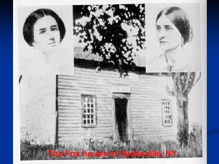 ESPIRITISMO MODERNO Ressurge em Hydesville (Nova Iorque), em 1848. n Residência dos Fox, duas jovens - Margareth (14 anos) e Katherine (11 anos), são as protagonistas do espiritismo moderno. n Em meados de março de 1848, começaram a ouvirse golpes nas portas e objetos que se moviam de um lugar para outro, sem auxílio de mãos. n Finalmente, na noite de 21 de março de 1848, a jovem Kate desafiou o poder invisível e repetiu o barulho como um estalar de dedos. O desafio foi aceito e cada estalar de dedos era repetido, o que surpreendeu toda a família. n