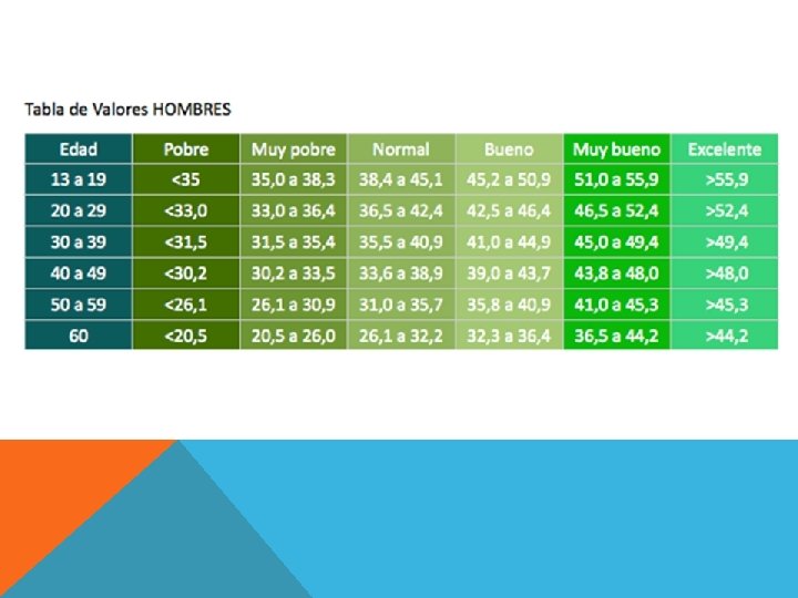 VALORES NORMALES Parámetro Referen cia FVC (capacidad pulmonar total) 3, 79 litros FEV 1 (volumen espirado en el primer segundo) 2, 87 litros FEV 1/FVC (proporción de CVF espirada en el primer segundo) 75, 73%