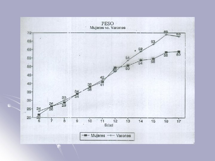 PRIMEROS AÑOS ESCOLARES (CRECIMIENTO ANUAL DE 5 CM) HOMBRES 13 AÑOS: SE TRIPLICO LA LONGITUD AL NACER • MUJERES: ACELERACION ESTATURAL 10 -12 AÑOS • HOMBRES ACELERACION ESTATURAL 12 -14 AÑOS • MUJERES: CRECIMIENTO CESA 17 -19 • HOMBRES: CRECIMIENTO CESA + 20 AÑOS