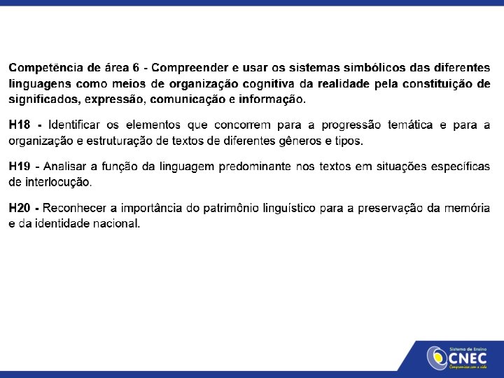 H 6 – Utilizar os conhecimentos da LEM e de seus mecanismos como meio de ampliar as possibilidades de acesso a informações, tecnologias e culturas.