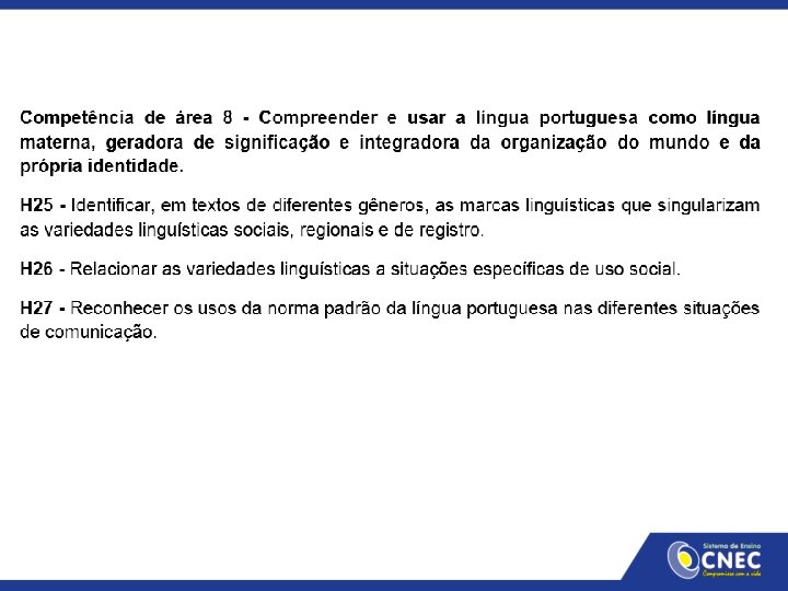 H 8 – Reconhecer a importância cultural em LEM como representação da diversidade cultural e linguística.