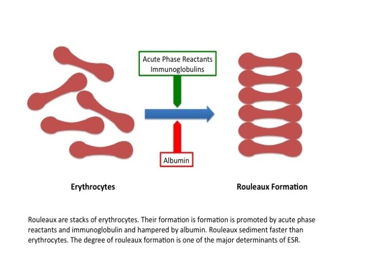 Mechanism • ↑ fibrinogen & globulin→ ↓ negative charge (↓repel) → aggregation and stick of RBCs → rouleax → more rapid sedimentation. • So formation of rouleax depend on plasma proteins. • N. B: ↓ albumin → ↑ESR