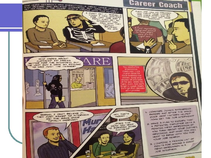 6. Utilize body language with eye contact, posture, way you sit and stand, the way you walk into the room. 7. Bring a portfolio to keep all interview materials along with predetermined questions. 8. Have a list of questions to ask. 9. Sell yourself and shine! Don't be modest; however, be confident. Self promote! 10. Before you walk out of the office, you let them you are the man for the job, want the job, are excited, and want to be part of the organization.