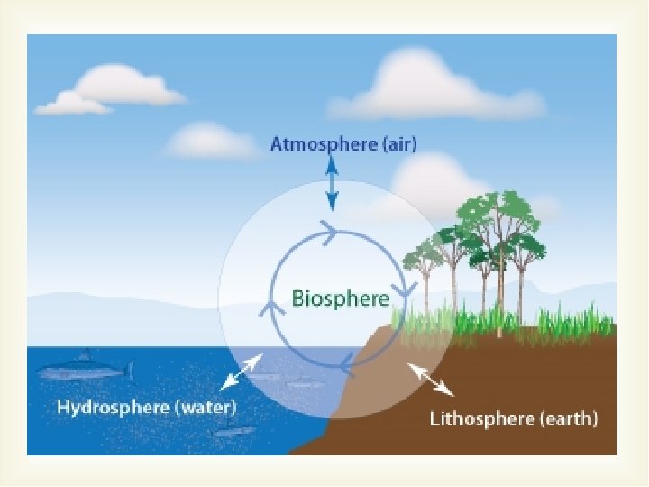 Four Spheres of Earth ❧ ❧Atmosphere: air ❧Lithosphere: land/ crust ❧Hydrosphere: water in all forms ❧Biosphere: all living things