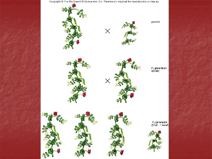 What happened? n n All the F 1 offspring were tall – what happened to the short trait? Mendel then allowed the F 1 offspring to crosspollinate In the next generation (F 2), 75% of the offspring were tall, but 25% of the offspring were short – the short trait reappeared How can you get short plants from tall plants?