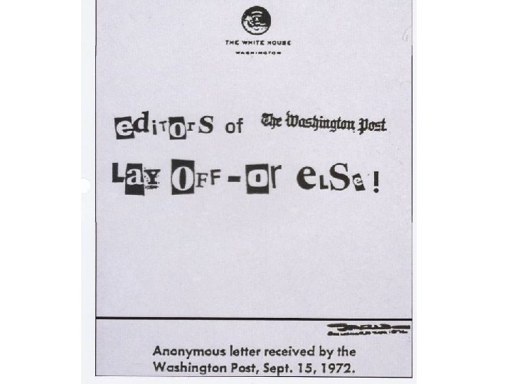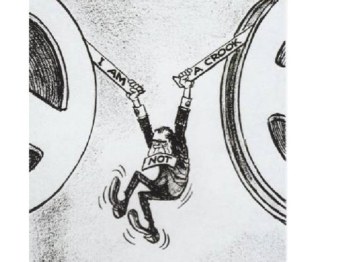 What do you see in this image? Nixon was insecure & paranoid about power: • He kept an “enemies list” of people he suspected were out to undermine his policies • “Tricky Dick” used his position as president In what might to spy on, infiltrate, & sabotage hisways “enemies” Nixon havefor been • These tactics & fears were the reasons the “his own worst Watergate scandal that ended his presidency enemy”?