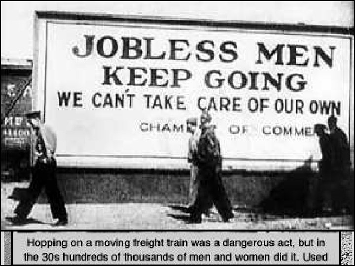 Effects of the Great Depression ■ The Great Depression led to a collapse of the U. S. financial system – 25, 000 banks & 90, 000 businesses failed by 1933 –Unemployment peaked at 25% –Many Americans lost their homes –America had record poverty & suicide rates; Fathers abandoned families; Healthcare declined –Private charities created soup kitchens & breadlines to help