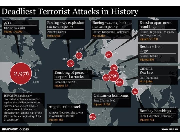 One important trend of the past 50 years has been the increase in international terrorism Terrorism is when people or groups use violence & fear to bring change to a government or society Terrorism is not new; Since the 1960 s more than 14, 000 attacks have occurred worldwide