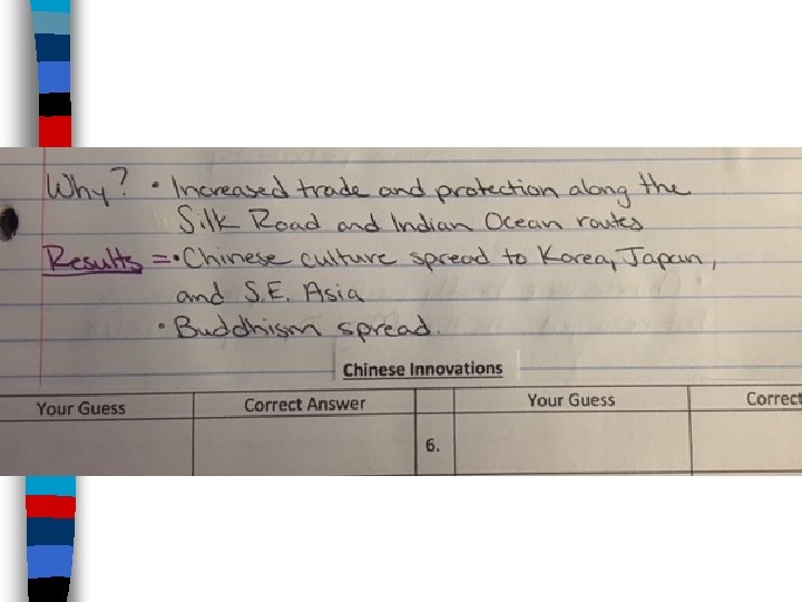 Chinese Innovations ■ The Tang & Song dynasties were eras of major technological advancement: –The technologies helped make China the most advanced country in the world –Much of China’s technology spread to other people across trade routes Class Activity: Working with a partner, guess what each of the following 10 Chinese innovations are