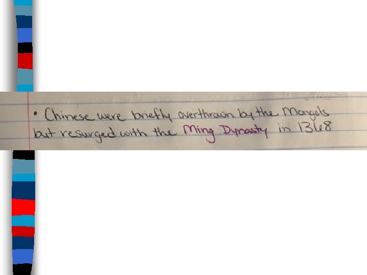 The End of the Golden Age ■ Despite the wealth & culture during under the Tang & Song Dynasties, the Chinese were briefly overthrown by the Mongols –From 1279 to 1368, foreign nomads called the Mongols ruled China