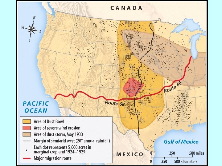 The Dust Bowl (1931 -1939) worsened the “Okies” & “Arkies” Areas Affected by the Dust Bowl drought effects of the Depression