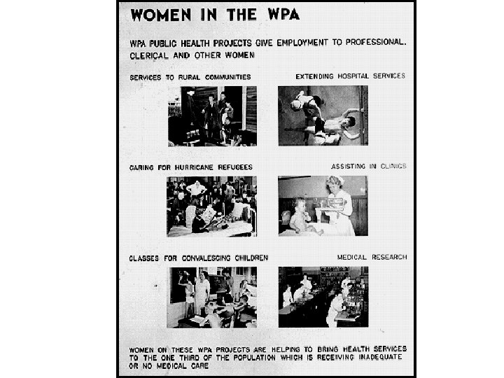 WPAcared Public Work Project WPA less about what got done as long as work was done: built hospitals, schools, airport fields… but also moved leaf piles & dug ditches