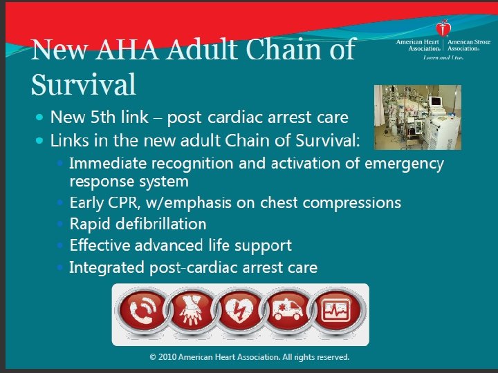 return of spontaneous circulation(ROSC ) and AED 40 35 30 25 100 15 10 75 5 50 AED 0 0 1975 1977 1979 1981 1983 1985 1987 1989 1991 1993 1999 Cobb, L. A. et al. JAMA 1999; 281: 1182 -1188. First Response with AED % 20