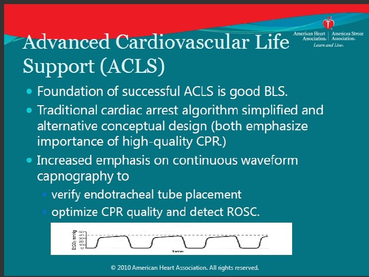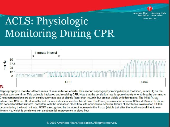 LOW ETCO 2 one element Predicting Failed Resucitation? Recommendation: • In intubated patients, failure to achieve an ETCO 2 greater than 10 mm Hg by waveform capnography after 20 minutes of CPR may be considered one component of a multimodal approach to decide when to end resuscitative efforts, but it should not be used in isolation • Efforts should be made to optimize CPR quality Why? • Failure to achieve an ETCO 2 greater than 10 mm Hg after 20 minutes has been associated with poor outcome in case series • Low ETCO 2 likely indicates very low cardiac output and pulmonary blood flow during CPR
