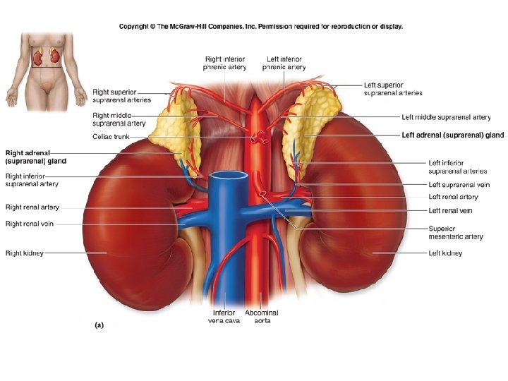 Adrenal Glands (suprarenal) • Paired, pyramid-shaped endocrine glands anchored on the superior surface of each kidney. • Retroperitoneal and embedded in fat and fascia to minimize their movement. • Outer adrenal cortex and an inner central core called the adrenal medulla. – secrete different types of hormones