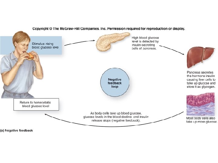 Pancreas • • • Alpha cells secrete glucagon when blood glucose levels drop. Beta cells secrete insulin when blood glucose levels are elevated. Delta cells are stimulated by high levels of nutrients in the bloodstream. – synthesize somatostatin, also described as growth hormone-inhibiting hormone, or GHIH, which slows the release of insulin and • • glucagon and slows the rate of nutrient entry into the bloodstream F cells are stimulated by protein digestion. – secrete pancreatic polypeptide to suppress and regulate somatostatin secretion from delta cells Pancreatic hormones provide for orderly uptake and processing of nutrients.