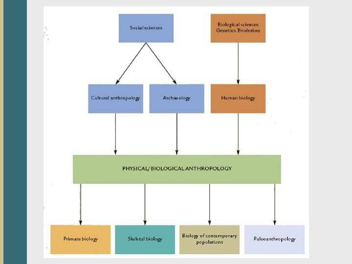 Physical Anthropology § § Study of human biology in the framework of evolution. Subfields: § Paleoanthropology - human evolution § Anthropometry - measurement of body parts § Primatology: study of nonhuman primates § Osteology: study of skeletons