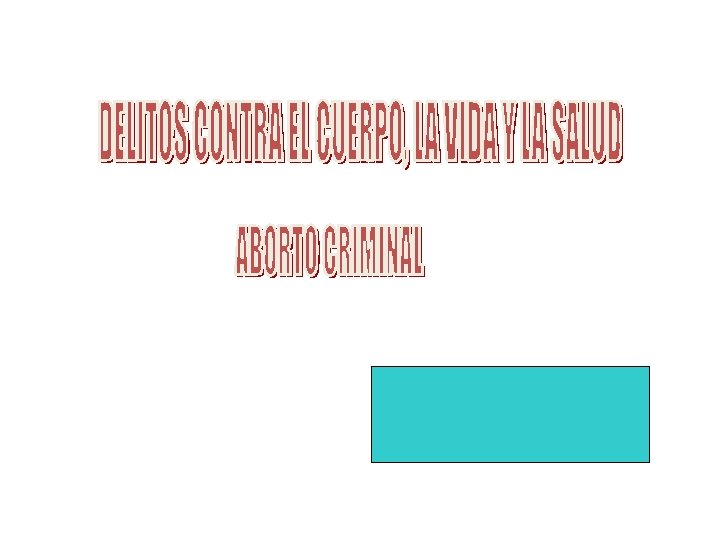 … Aborto no consentido • EL SUJETO ACTIVO: CUALQUIER PERSONA EXCEPTO LA GESTANTE. QUIEN DOLOSAMENTE POR ACCIÓN O POR OMISIÓN, HACE ABORTAR A UNA MUJER SIN SU CONSENTIMIENTO. • EL SUJETO PASIVO: - EMBRIÓN O FETO - LA GESTANTE.