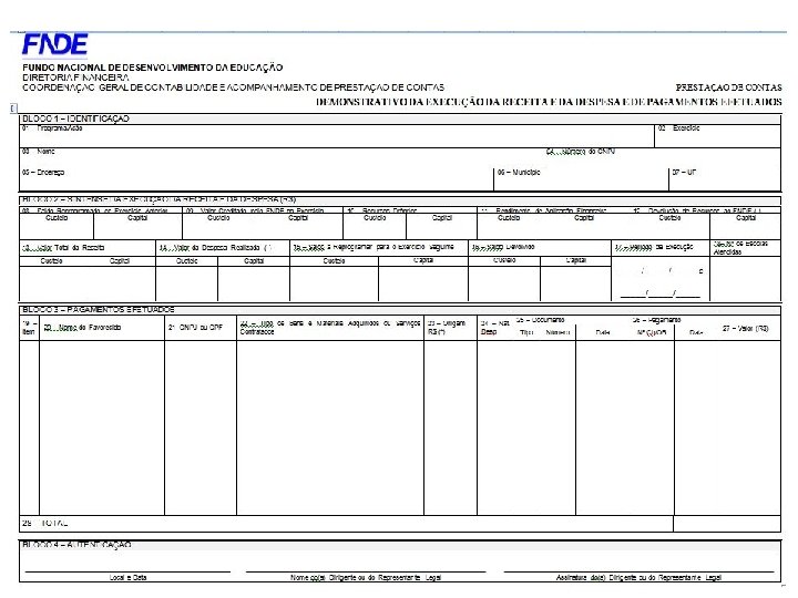 PAGAMENTO DA G. R. U. • • Falta de aplicação financeira Gastos indevidos custeio/capital Para gerar a Guia de Recolhimento da União (G R U): ü Site do Tribunal de Contas da União (TCU) imprimir o Demonstrativo de Débito. e http: //contas. tcu. gov. br/debito/Web/Debito/Calculo De. Debito. faces ü Site do FNDE e imprimir a G. R. U. https: //consulta. tesouro. fazenda. gov. br/gru_s imples. asp