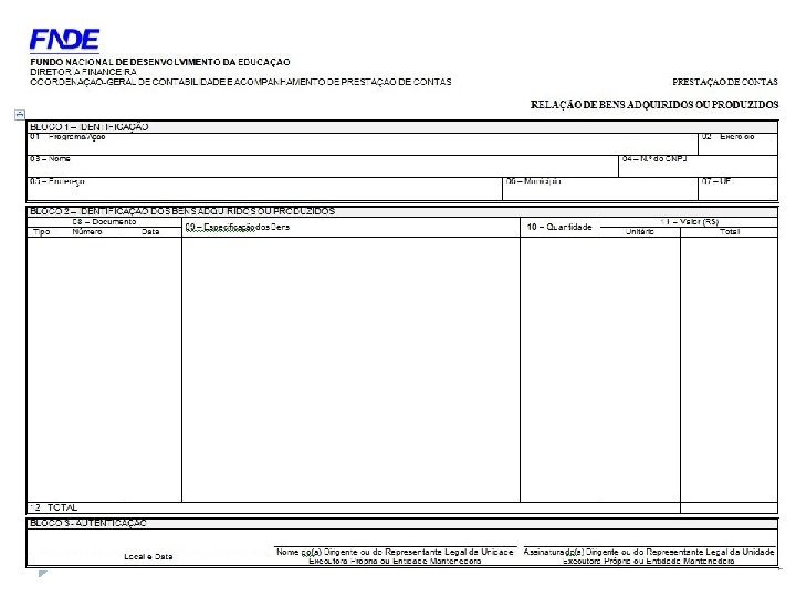 DOCUMENTOS COMPROBATÓRIOS ü Todos os documentos que comprovam as despesas do PDDE (notas fiscais, faturas e outros) deverão estar sem rasuras, constar o nome da UEx, CNPJ, endereço completo e conter a identificação do programa FNDE/PDDE 2014. ü Carimbo do Certifico: 01 em nome do presidente da APP 01 em nome do Diretor(a)