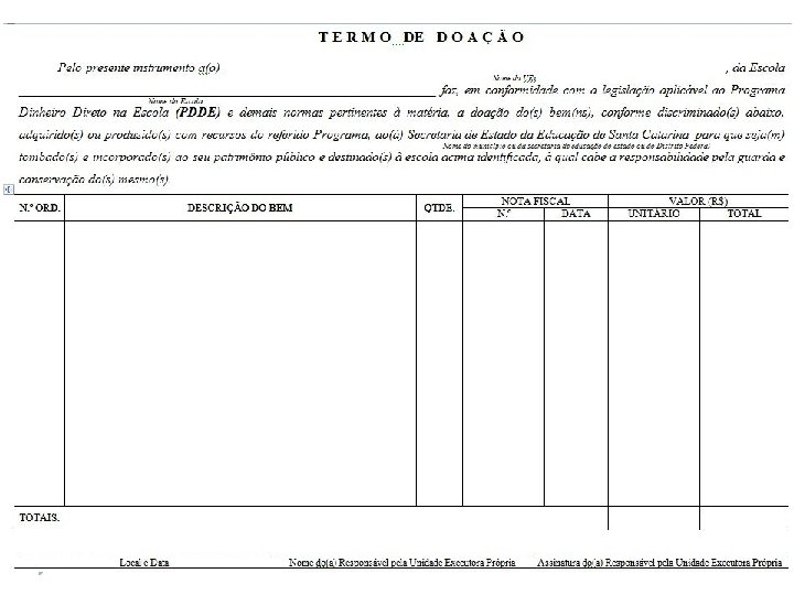 PATRIMÔNIO uando eução sição ua patrimoniais, com o recurso do PDDE, é necessário incorporá-los ao patrimônio da SED com guarda total da escola.