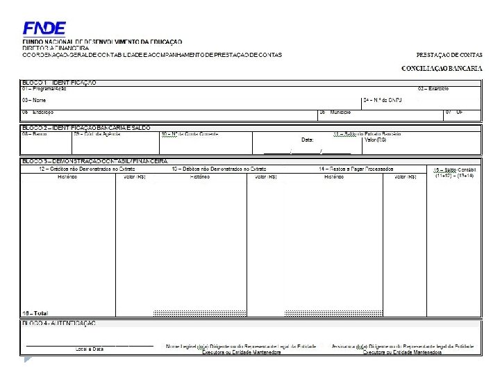 CONCILIAÇÃO BANCÁRIA Caso o cheque não tenha sido compensado até a data da Prestação de Contas, é necessário fazer uma conciliação bancária relacionando toda movimentação dos cheques emitidos, de acordo com o extrato do banco.