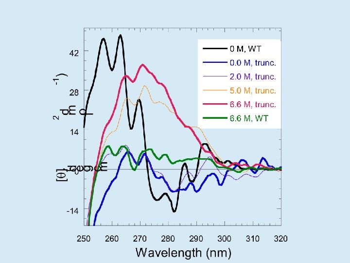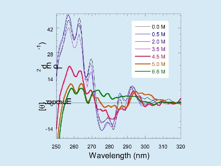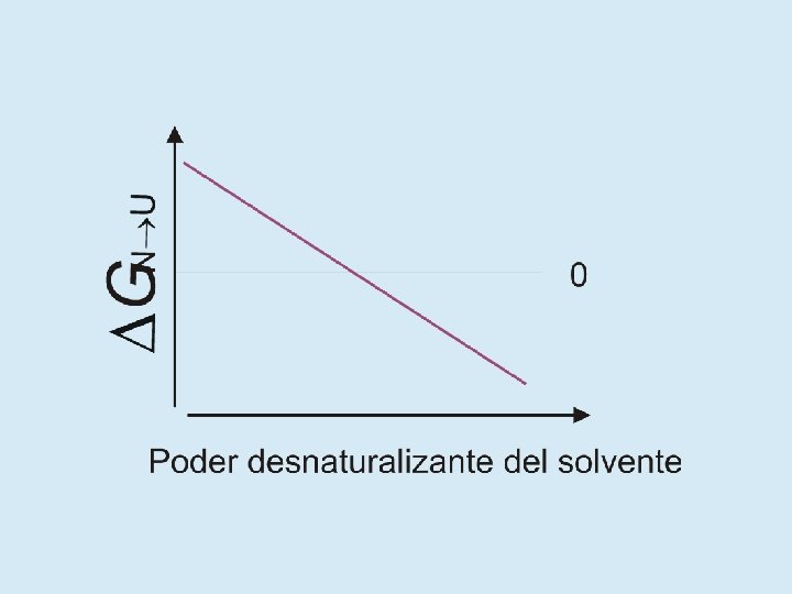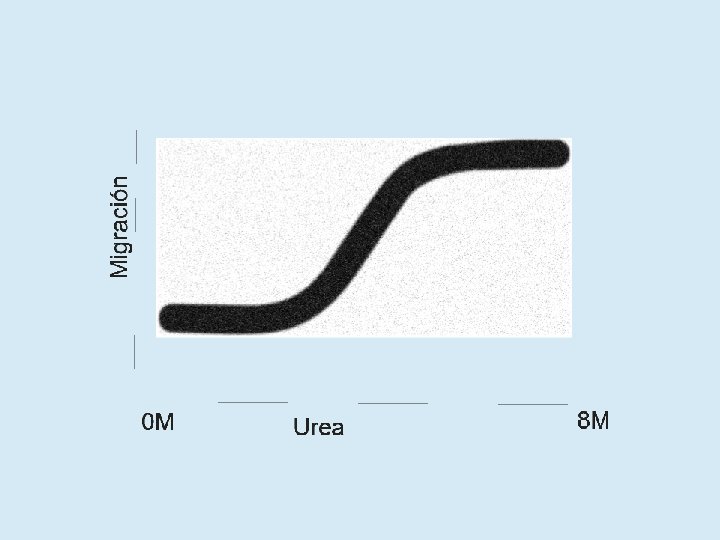 ¿Qué relación existe entre N, I y U? • En soluciones fisiológicas N es absolutamente mayoritario • En presencia de urea o cloruro de guanidinio concentrados (agentes caotrópicos), N se desestabiliza y aparecen I y U • Los agentes caotrópicos solubilizan las cadenas laterales haciendo más favorable la interacción con el agua