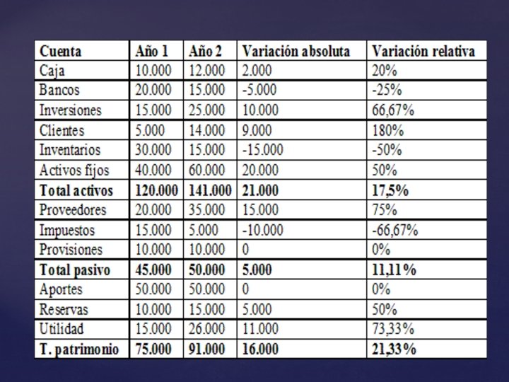 ESTADOS FINANCIEROS { 1 ü ü Análisis vertical Análisis horizontal