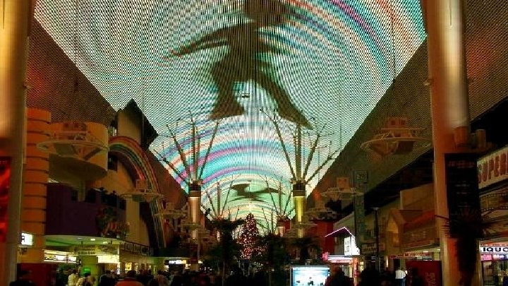 Fremont Street Experiéncia CENTRO ANTIGO Los cinco cuadras por la calle, de la calle principal de Las Vegas Boulevard, se han transformado en una zona peatonal cubierta, llena de Casinos. Cada noche hay un espectáculo con más de un millón de luces controladas por ordenador.