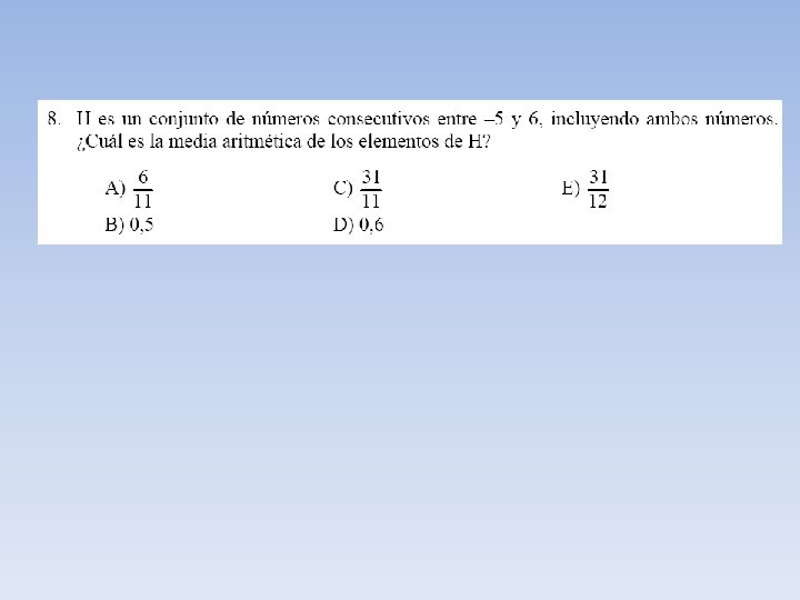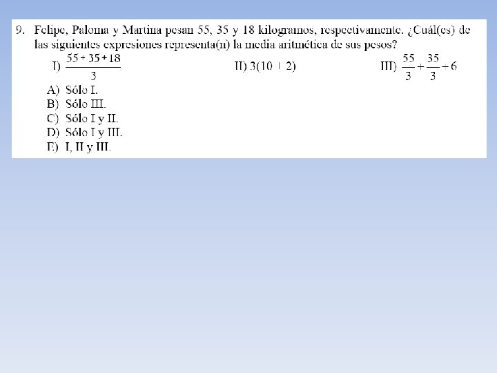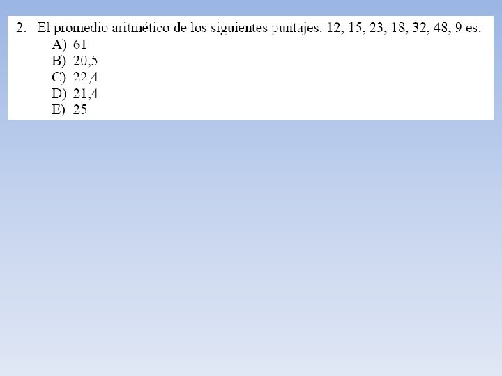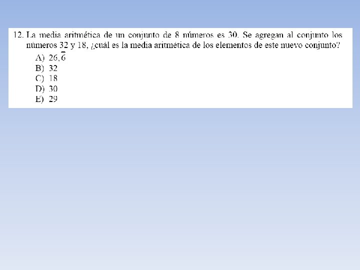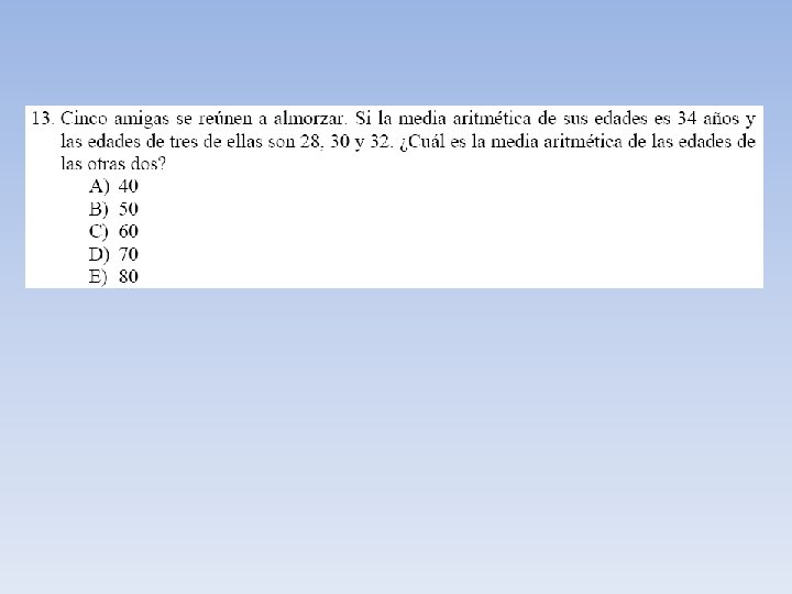 Ejemplo N° 1 Consideremos la edad en años de ocho personas 10 18 25 32 12 5 7 7 En este ejemplo el promedio , media o media aritmética de la edad de estas personas está dada por: Es decir la edad promedio de estas personas es de 14, 5 años.