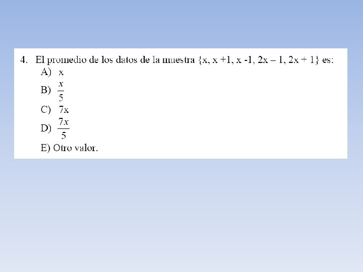 PROMEDIO PARA DATOS NO TABULADOS Sea X una variable cuantitativa y x 1, x 2, …, xn una muestra de tamaño "n" de valores de la variable, se define la media aritmética de X como: Esta expresión se puede escribir también , como: