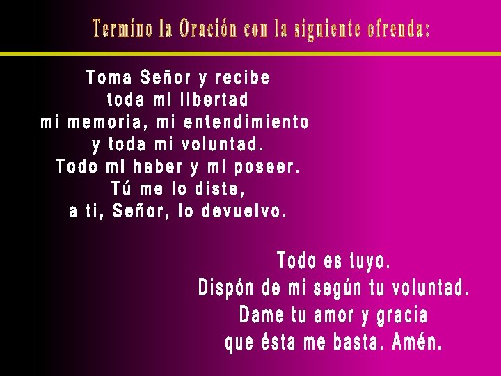 Para centrar la experiencia vivida en la Oración, respondo en forma sencilla las siguientes interrogantes: [ Termino con la oración siguiente ]