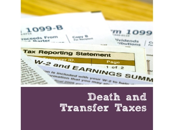 Estate All property subject to tax Probate Property Last Will & Testament Property Distribution Laws In State of Residence Non-Probate Property - Jointly Owned - Beneficiary Designated - Revocable Trust Property