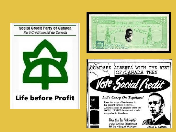 § A promis une solution aux problèmes de chomage en 1930. § Camp de travail (On-To-Ottawa Trek) (https: //www. youtube. com/watch? v=8 rmim. Oc. Ljk. A&disable_polym er=true) § Paiements d'aide sociale ( «le Dole» ) pour les travailleurs ordinaires et leurs familles § Lever les taxes d’impôt pour que les compagnies peuvent faire plus $.