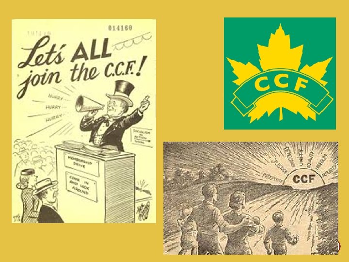 § Les Canadiens se sont tournés vers leur gouvernement pour régler les problèmes de la Grande Dépression et faciliter la vie (encore? ) § Lorsque les gouvernements libéraux et conservateurs actuels (de Mackenzie King et R. B. Bennett, respectivement) ont échoué, d'autres partis ont été créés pour représenter la volonté du peuple. Tels que…….