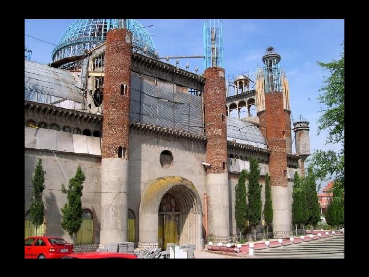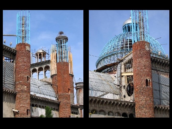 Catedral de la Almudena hecha con toda la tecnología moderna, terminada en 1993, sede de bodas reales, en donde se utilizó la ultima tecnología en grúas y polipastos y todo el poderío económico de la Iglesia Católica, mientras que la Catedral de Justo Gallego tiene como grúa una cuerda y como polea la estructura de una rueda de una vieja bicicleta.