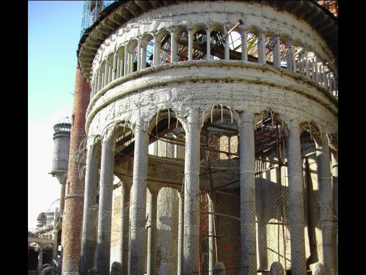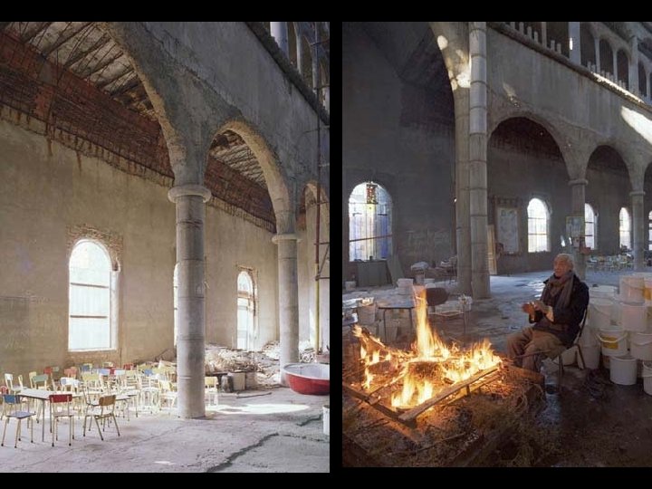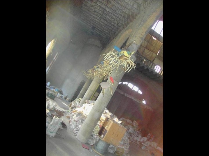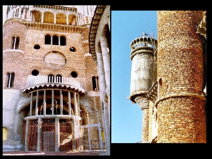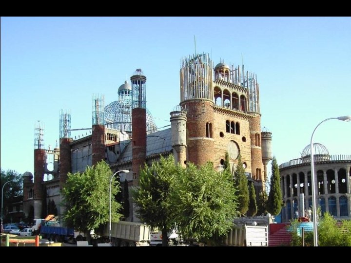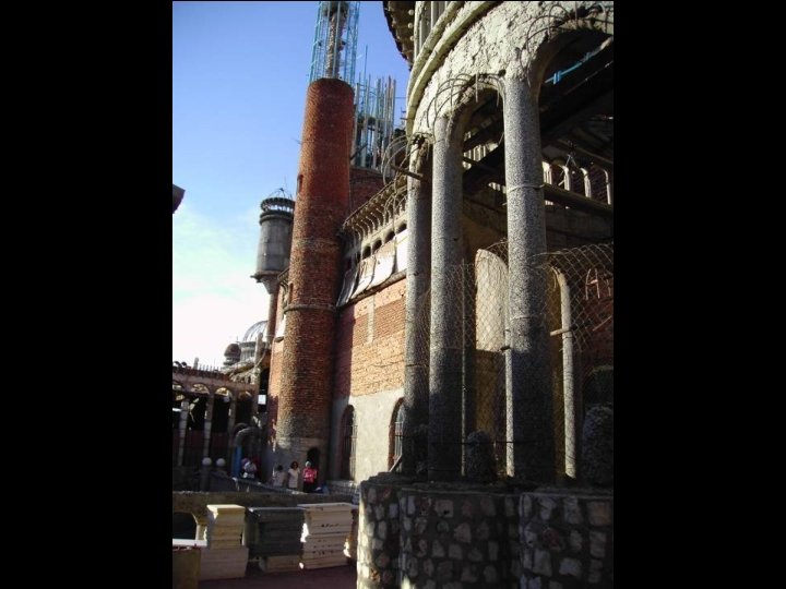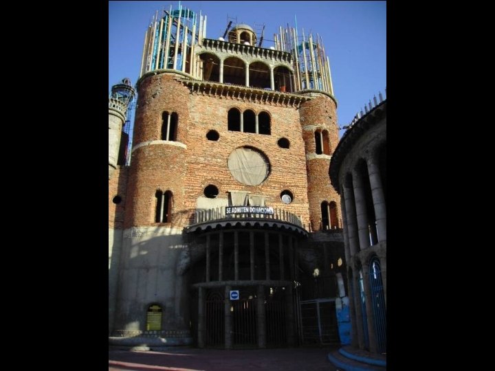 Irónicamente, el templo de Don Justo se alza en la Calle Arquitecto Gaudí de Mejorada del Campo. A Antonio Gaudí también le llamaban loco cuando comenzó a construir la Sagrada Familia de Barcelona. Y como homenaje al genio catalán se levantan allí galerías irregulares, capillas con forma de tartas, escaleras de caracol que trepan hacia el cielo entre montañas de escombros pegadas entre si de forma misteriosa. La catedral de Don Justo es una gran obra religiosa, pero también estandarte del reciclaje: el encofrado de las columnas sale de bidones exóticos de productos químicos venidos de China. La forma de los arcos la consiguió con el empleo de gastados neumáticos de camiones. La rueda de una vieja bicicleta se convirtió hace tiempo en la polea que cuelga de una esquina del techo y que don Justo usa para subir a las alturas el material que transforma.