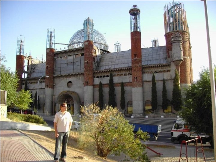 Este es JUSTO GALLEGO y al fondo la catedral que está construyendo en MEJORADA DEL CAMPO (Madrid). ¿Loco o visionario?
