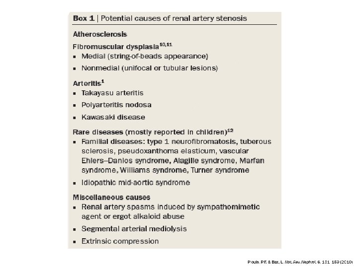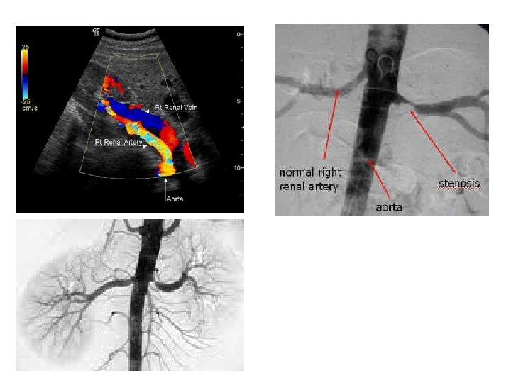 HALLAZGOS CLÍNICOS SUGESTIVOS DE ERV • HTA moderada a severa en un paciente con un riñón atrófico sin causa explicable, o asimetría en los tamaños de los riñones >1. 5 cm. • Un riñón unilateral pequeño (≤ 9 cm) tiene un 75% de correlación con la presencia de enfermedad oclusiva de la arteria renal. • HTA moderada a severa en pacientes con aterosclerosis difusa (coronaria y vascular periférica). • HTA moderada a severa en pacientes con episodios recurrentes de edema agudo de pulmón (flash) o de insuficiencia cardíaca inexplicable.