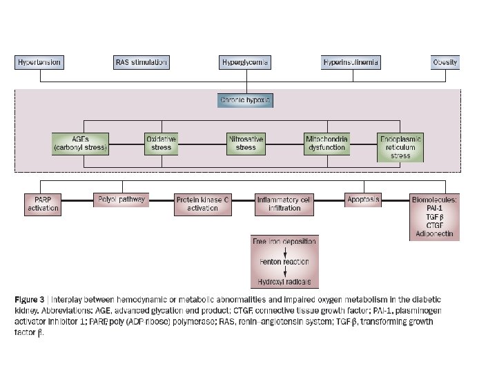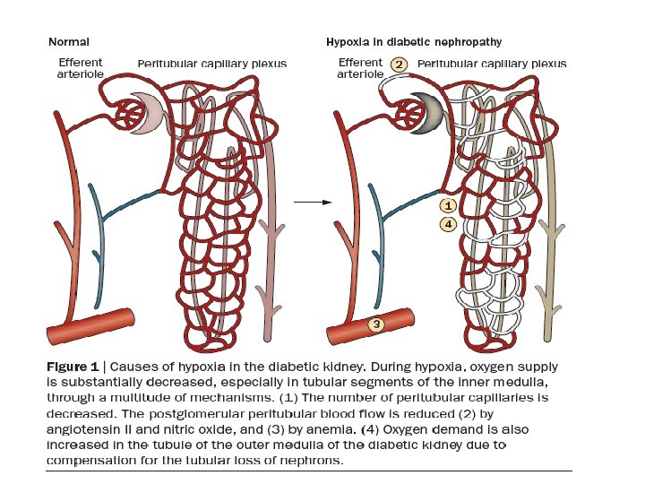 En la diabetes en particular, la hipoxia a nivel renal se origina por otros mecanismos. Principalmente en la nefropatía diabética, en la cual la HTA es prevalente y en la cual la ERV o no es estudiada por omisión, o no es posible estudiar (por obesidad, para evitar el iodo o el gadolinio) o es estudiada y no diagnosticada (por las limitaciones del método en sí mismo) o es diagnosticada y se decide conducta expectante o es diagnosticada y se decide revascularizar con la subsiguiente exposición al iodo, una molécula vasoconstrictora y túbulotóxica.