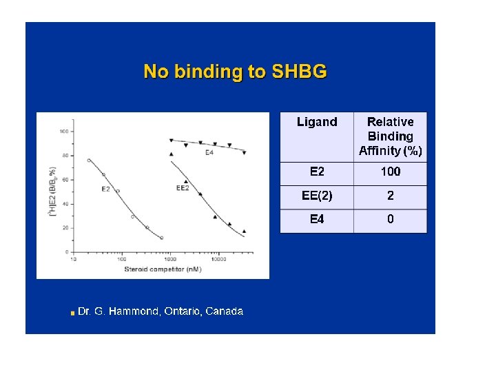 Mechanism of Action Differences E 4 versus E 2 and EE • • No active metabolites of E 4 (vs E 2) No increase of estrone sulfate with E 4 (vs E 2) No cytochrome P 450 inhibition by E 4 No SHBG binding of E 4 vs E 2 40% (Hammond) Different ligand receptor interaction (Greene) Less desulfation of E 4 vs E 1 and E 2 (Falany) Vasodilation with different profile vs E 2 (Hilgers)