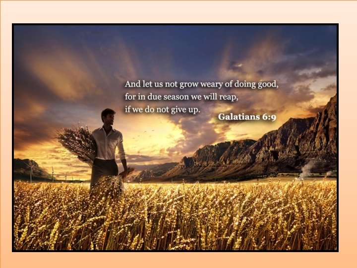 Galatians Chapter 6 Reaping and Sowing Galatians 6 Reaping and Sowing 7 “Do not be deceived ; God is not mocked: For whatsoever a man sows, that shall he also reap. 8. He who sows to the flesh shall by the flesh reap corruption; but he that sows to the Spirit, shall of the Spirit reap Life everlasting. ’ 9. Let us not be weary in well-doing; for in due season we shall reap, if we faint not. ” 10. Therefore as we have opportunity, let us do good unto all men, especially those of the household of faith. ”