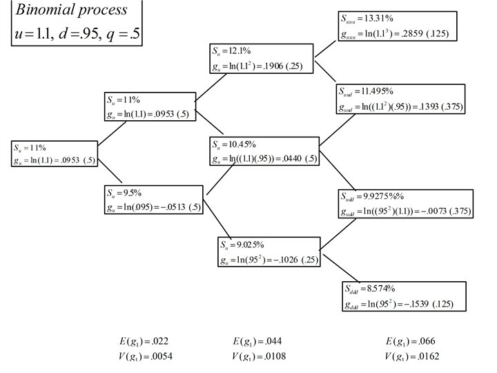 Binomial Process • Note: When n = 1, there are two possible prices and logarithmic returns: