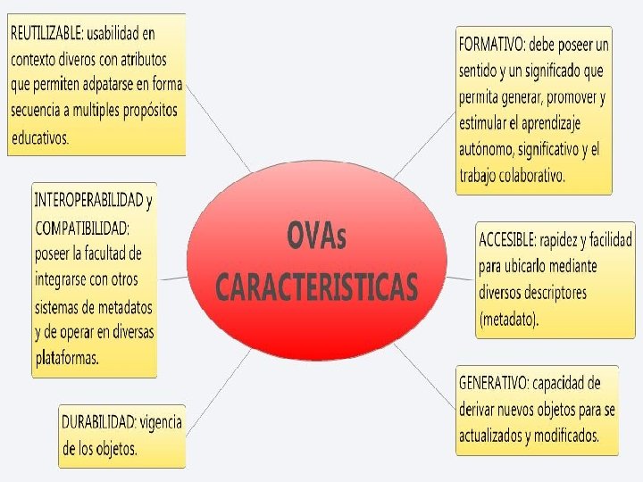 Para el proyecto Aproa 2, se define como Objeto de Aprendizaje a: “La mínima estructura independiente que contiene un objetivo, una actividad de aprendizaje, un metadato y un mecanismo de evaluación, el cual puede ser desarrollado con tecnologías de infocomunicación (TIC) con el fin de posibilitar su reutilización, interoperabilidad, accesibilidad y duración en el tiempo. ” http: //www. aproa. cl OVA hace referencia a todos los materiales audiovisuales estructurados de una manera significativa, los cuales tienen un propósito educativo y corresponden a un recurso de índole digital que puede ser distribuido en medio magnético y/o consultado en el aula virtual. http: //virtual. unisangil. edu. co/index. php/es/glosario/Glosario-1/O/Objeto-Virtual-de-Aprendizaje-OVA-15/
