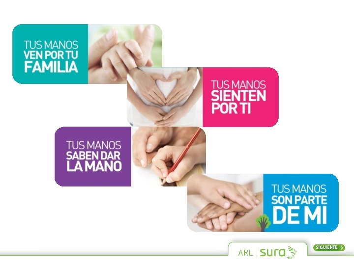 Qué buscamos Acompañar a las Empresas en el desarrollo de un modelo de intervención para la prevención de accidentes en manos. En las manos se expresa el riesgo a través de la falta de orden y aseo, el almacenamiento incorrecto, los equipos y herramientas defectuosos o utilizados de manera incorrecta, la caída de objetos y por muchas otras situaciones que se viven diariamente en las empresas