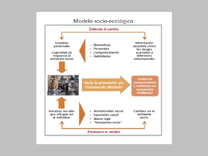Principios rectores La salud es una prioridad nacional, un objetivo común y una responsabilidad compartida Se basa en un modelo socio-ecológico que reconoce las complejas interrelaciones entre los determinantes sociales, los determinantes biológicos y los comportamientos personales, familiares y comunitarios Debemos anticiparnos a la enfermedad atendiendo sus determinantes causales Se debe garantizar que la sociedad esté adecuadamente informada y que tenga una responsabilidad compartida en cuanto a su salud