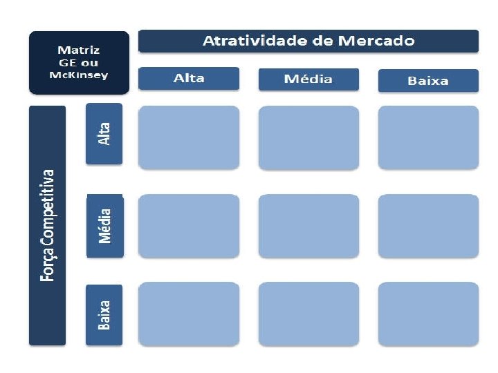 Atratividade do Mercado 5 5 Força do Negócio 3, 67 (Posição Competitiva) 2, 33 1 Forte Alta Média Baixa 3, 67 Média 2, 33 Fraca 1