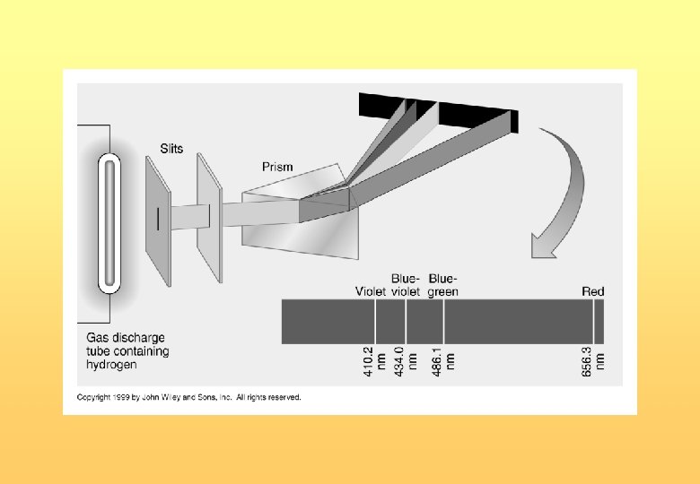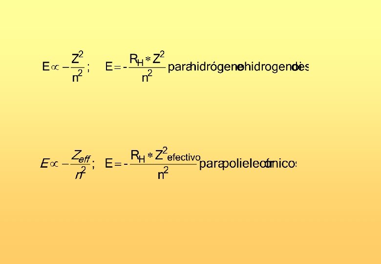Espectros de líneas • 1885. Balmer encontró que las líneas en la región visible del espectro del hidrógeno responden a la siguiente ecuación: • Posteriormente Lyman generalizó esta expresión: • Donde RH es la constante de Rydberg (3, 29 1015 Hz) • n 1 y n 2 son números naturales y distintos de cero (n 2 > n 1).